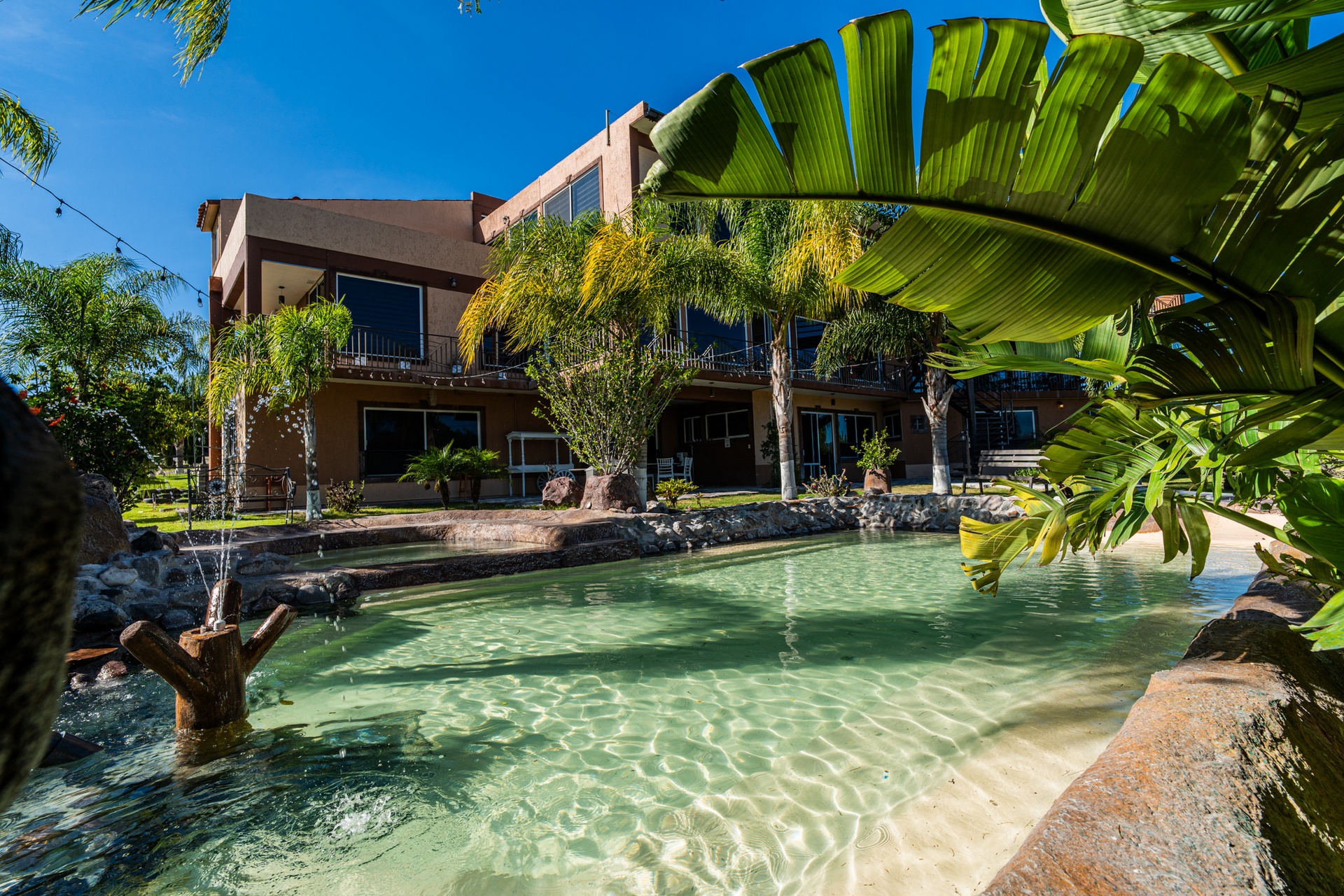 siempre rodeados de luz, vegetación y tranquilidad. Incluye: • Jardín principal: Capacidad hasta 250 personas. • Terraza semicubierta: Ideal para comidas o actividades bajo sombra. • Alberca y zona de descanso: Perfecta para convivios de verano. • Áreas verdes abiertas: Para dinámicas, juegos o presentaciones. • Hotel boutique (opcional): Alojamiento para organizadores o personal del colegio. • Estacionamiento amplio y seguro.