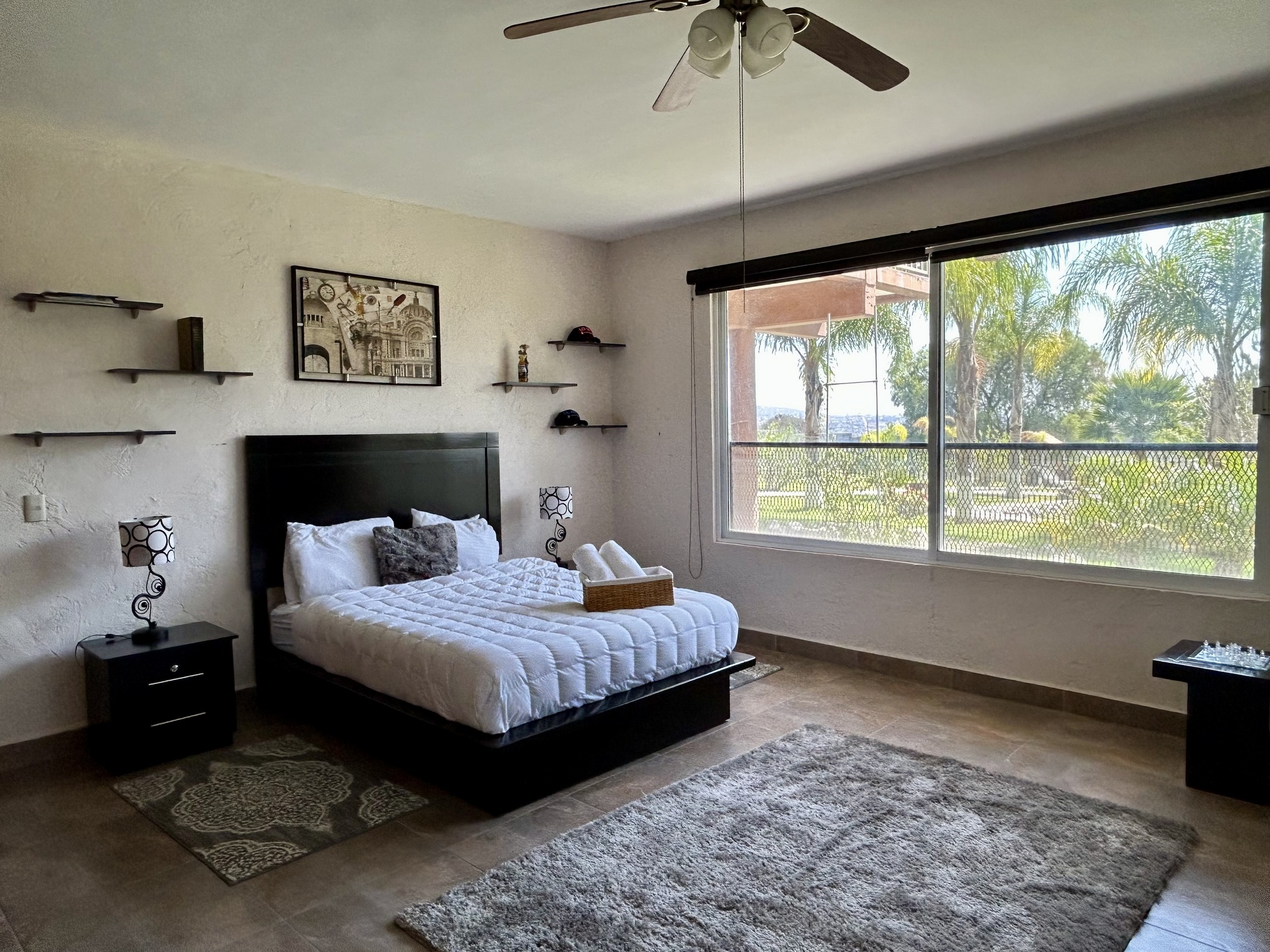 Habitación sencilla con vista al jardín, cómoda y luminosa